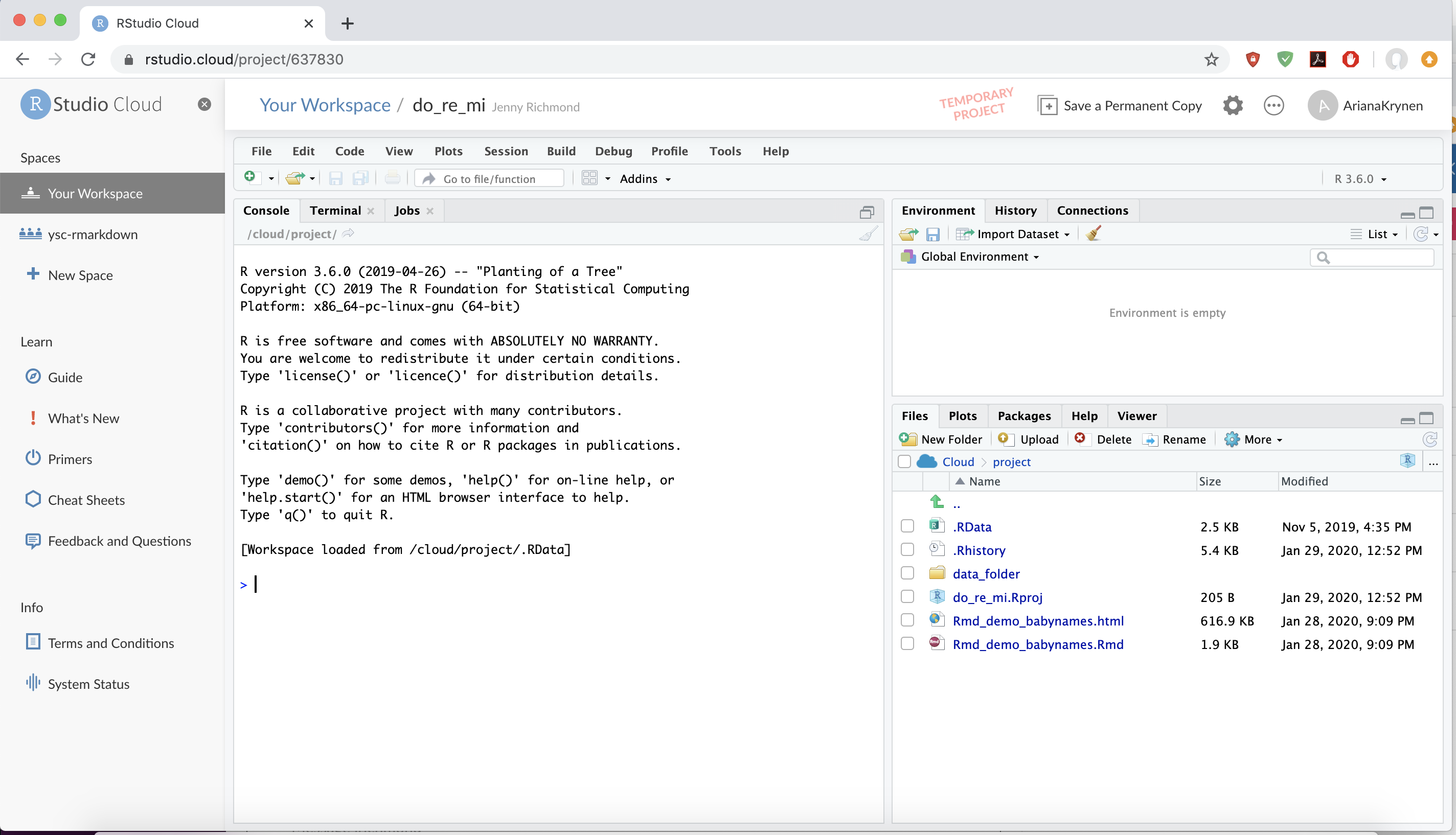 Step 2. Then open the Rmd_demo_babynames.Rmd file and find the grey "chunk" that has library(tidyverse)