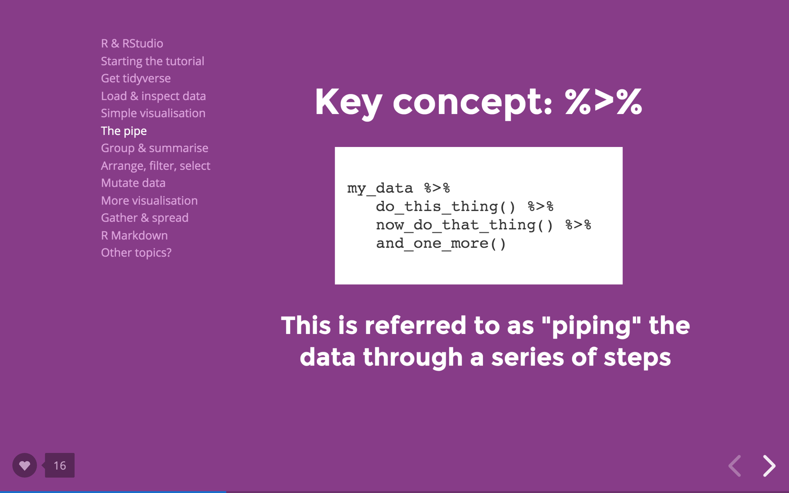 data %>% filter(interesting_variable > z) %>% ggplot(aes(x = __, y = __, colour = condition)) + geom_point() + facet_wrap(~ group) ggsave("your_first_ggplot.png")