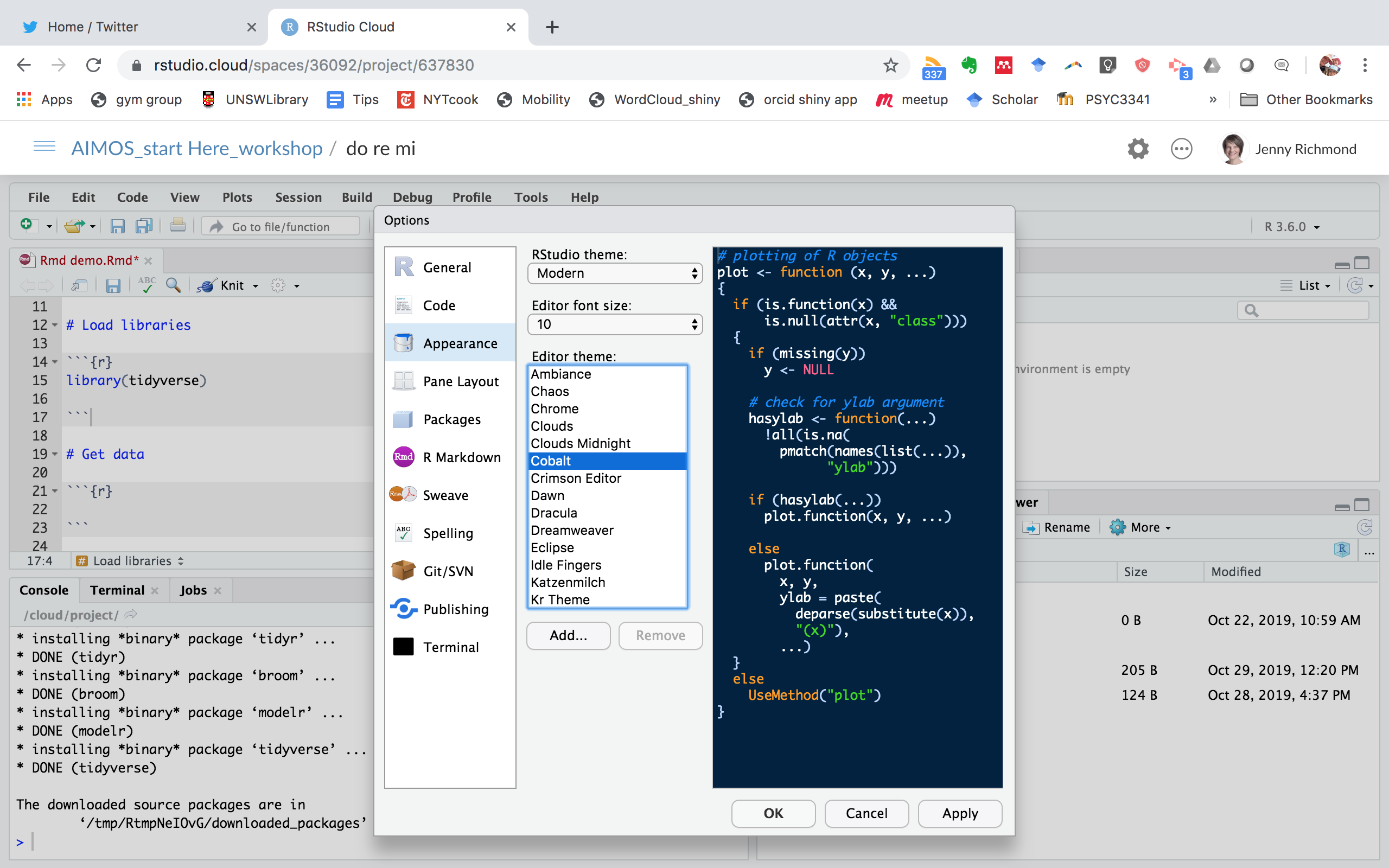 Step 3: Make a new chunk (Cmd-Option-I) and load packages using library()
